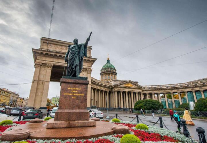 【喀山大教堂】(外觀約10分鐘)俄羅斯第一座由俄羅斯建筑師修建的歐洲風(fēng)格的教堂,也是圣彼得堡最靈驗(yàn)的東正教教堂。半圓型的柱廊由94根圓柱組成,面向大街,環(huán)抱廣場(chǎng)。柱廊前面矗立著俄軍統(tǒng)帥庫(kù)圖佐夫紀(jì)念碑和俄國(guó)陸軍元帥紀(jì)念碑。教堂里有庫(kù)圖佐夫墓和1812年打敗拿破侖的勝利品。喀山圣母像曾經(jīng)多次顯靈。第一次顯靈于伊凡雷帝時(shí)期。