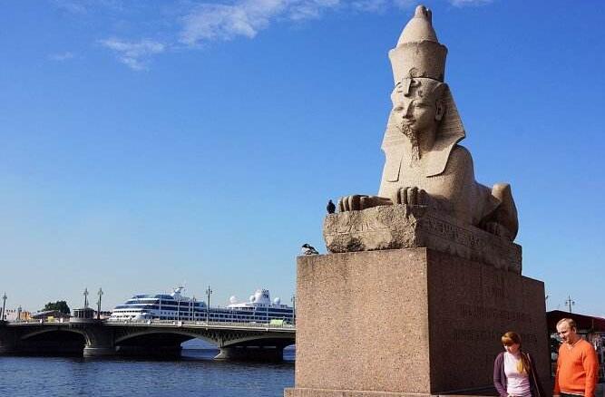 【獅身人面像雕塑】(參觀約10分鐘)這對(duì)獅身人面像是15世紀(jì)從埃及出土的文物,由俄羅斯政府購(gòu)買(mǎi)并運(yùn)回圣彼得堡擺放在了涅瓦河畔。
