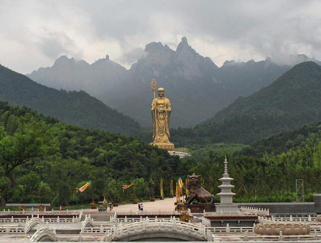 6月14日早餐后游覽九華山文物館——開(kāi)山祖寺【化城寺】,乘九華山地面纜車上【百歲宮】,朝禮天然睡佛(山體形狀酷似已故的九華山佛協(xié)會(huì)長(zhǎng)仁德大師),參拜126歲圓寂之明代高僧【無(wú)瑕法師真身】,參觀五百羅漢堂,【東崖禪寺】,【華嚴(yán)禪寺】,【肉身寶殿】(大愿金地藏菩薩肉身塔殿),地藏禪寺,九華街,午餐后乘車赴閔園景區(qū),參觀“天下第一奇松”——【鳳凰古松】,閔園尼庵群,乘客運(yùn)架空索道至【古拜經(jīng)臺(tái)】,參觀古拜經(jīng)臺(tái)(地藏王菩薩大腳印),【觀音峰】,大鵬聽(tīng)經(jīng)石,金龜朝北斗,攀登 “會(huì)當(dāng)凌絕頂,一覽眾山小”之天臺(tái)峰,參觀九華山最高寺廟——【天臺(tái)禪寺】,遠(yuǎn)眺海拔1342米的最高峰——十王峰,南望黃山如屏、北瞰長(zhǎng)江如練,信步青龍背、捧日亭、一線天,乘索道下山,結(jié)束今天的行程,后入住酒店。