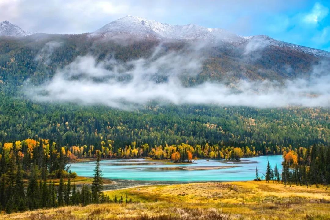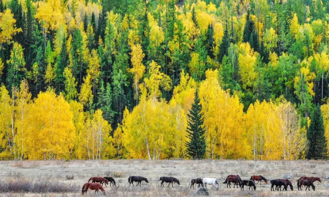 禾木的金黃,還離不開白樺林的助攻,縱橫交錯(cuò)的野生白樺,在秋季都變得金燦燦的,搭配上白色的樹干,金白交錯(cuò)的場(chǎng)景無(wú)疑為這片土地增添了一抹與眾不同的色彩。秋天留給喀納斯,生命從此選擇你——北疆。