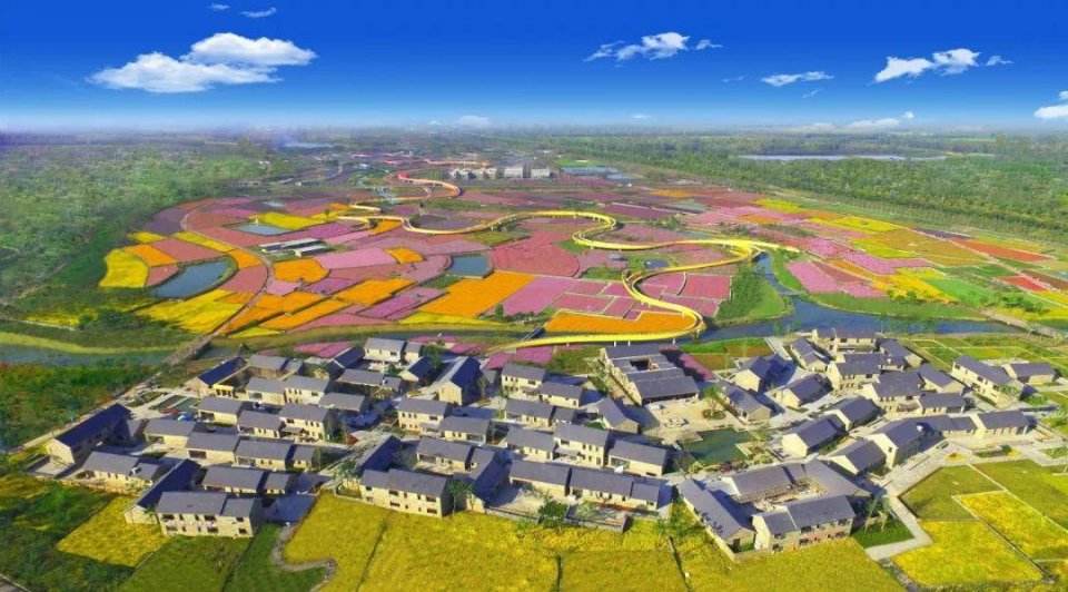 【衲田花海】景區(qū)內(nèi)的“衲田花?!?,總面積2220畝,由612塊花田 “縫補(bǔ)”拼接而成,融合了北方旱梯田的雄渾和南方水梯田的俊秀,與僧人袈裟異曲同工,又兼具納祥聚福之意,樸質(zhì)卻熠熠生輝。這里栽植著50多種花卉,自南向北形成黃、紅、紫三大色區(qū),呈現(xiàn)出海納百川之態(tài)、兼容并蓄之美。站在全長(zhǎng)2.3公里的彩虹橋俯瞰花海,聽(tīng)花開(kāi)花落,嗅濃郁芬芳,感受濃濃的原鄉(xiāng)情懷。