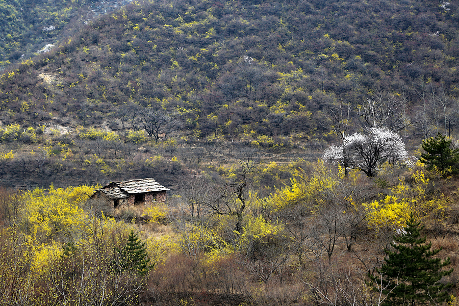 桃花、梨花、杏花、連翹花,相互爭(zhēng)艷