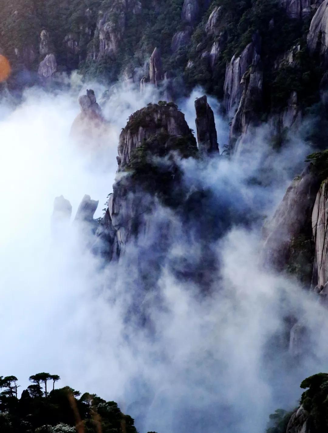 6月的三清山是一個(gè)多變的三清山,降雨過后,三清山云霧彌漫,在山谷中涌動(dòng)起伏,群山若隱若現(xiàn),女神在云霧中翩翩起舞,美輪美奐。