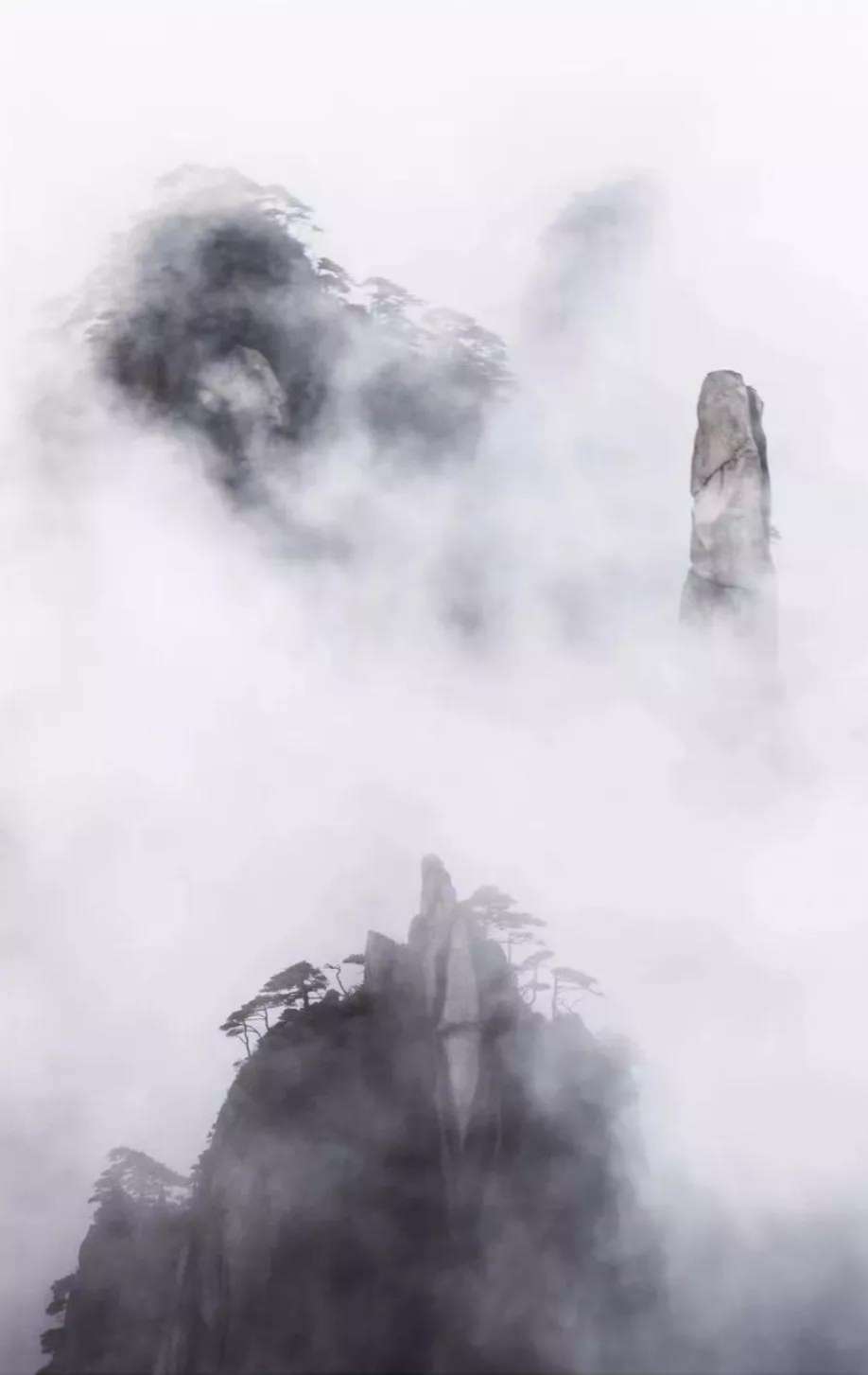 云霧繚繞在層巒疊嶂之間,云海時(shí)濃時(shí)淡,石峰若隱若現(xiàn),景象變幻萬千,宛如天然水墨畫。