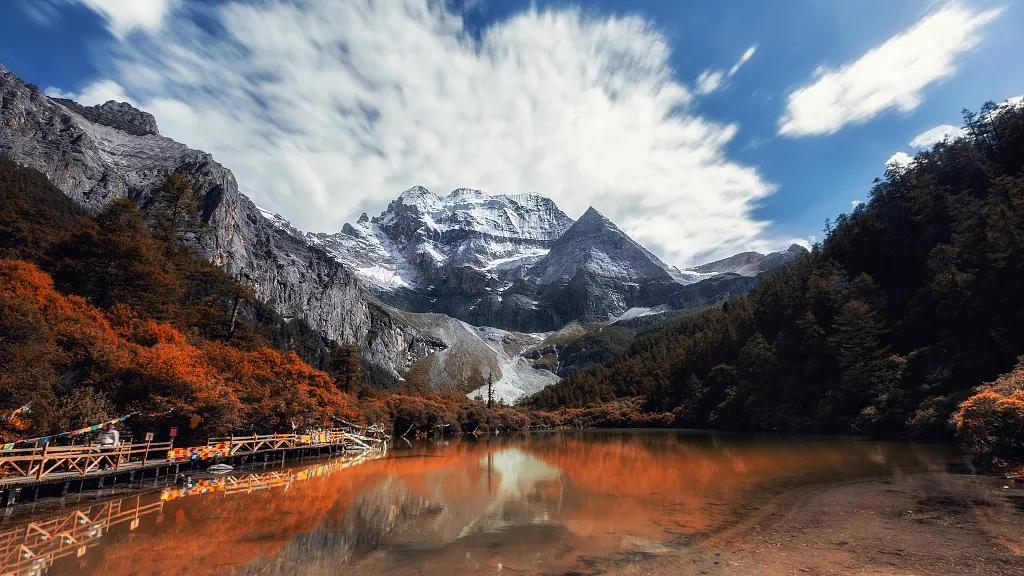 乘觀光車到達龍同壩,景區(qū)以仙乃日(6032,藏語觀世音菩薩)、央邁勇(5958,藏語文殊菩薩)、夏諾多吉(5958,藏語金剛手菩薩)三座雪峰為核心區(qū),北南向分布,三座雪山呈品字形,三峰藏名為“念青貢嘎日松貢布”,意為“三怙主雪山”,是眾生朝圣積德之所在地,徒步抵達沖古寺(藏語意為填湖造寺,海拔3900米),由草地、森林、小溪和嘛呢堆組成的天然沖古草坪,使你真正感覺到大自然的雄壯、美麗、神奇和嫵媚;