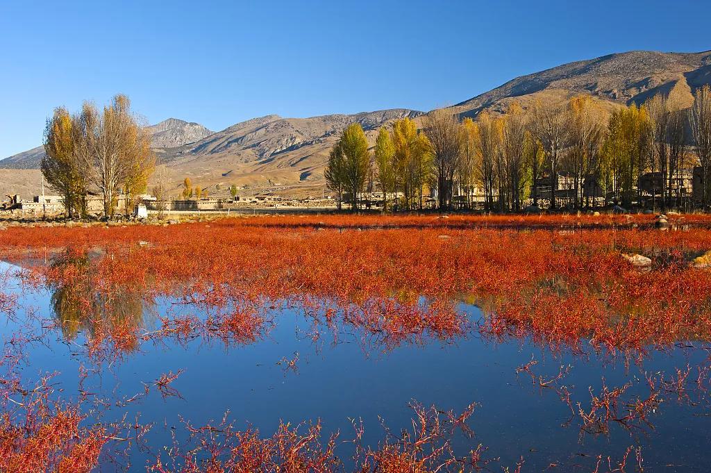 早上從稻城出發(fā),前往桑堆的途中可以停留拍攝紅草地(該景點為季節(jié)性景觀,只有在每年的九月中旬到十一月上旬才能看到紅草),在秋天的時候,配合上后面泛黃的樺樹,倒映在水塘中,是非常漂亮的一道美景;