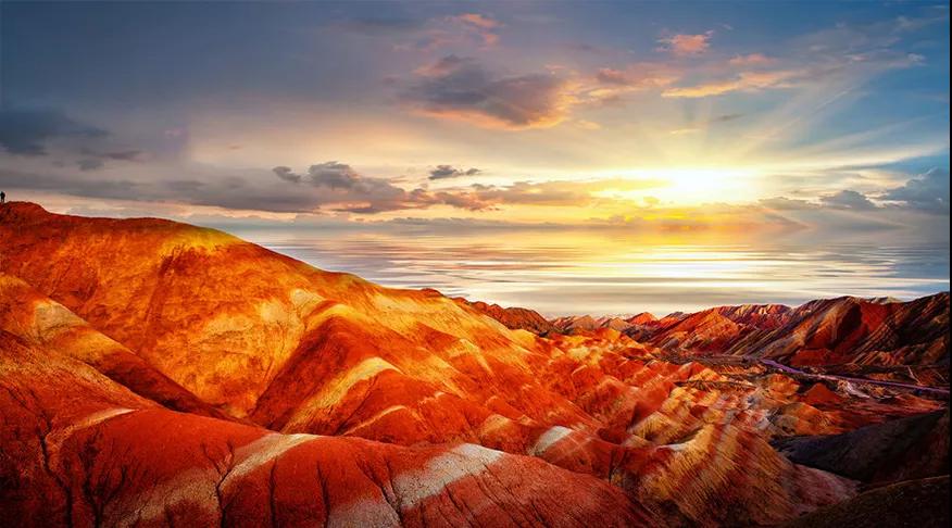 游玩過后前往張掖 [ 丹霞地質(zhì)公園 ] ,這里的自然景觀得天獨厚,是中國丹霞地貌發(fā)育最大最好、地貌造型最豐富的地區(qū)之一。景區(qū)還是張藝謀的電影《三槍拍案驚奇》、姜文執(zhí)導的電影《太陽照常升起》、知名電視劇《神探狄仁杰》的外景地,2005年11月由中國地理雜志社與全國34家媒體聯(lián)合舉辦的“中國最美的地方”評選活動中,當選為“中國最美的七大丹霞”之—,如果天氣晴好,在這里可以觀賞到一場唯美的落日盛宴。感受落日的余暉落在起伏的丘陵上,晚霞般的大地與落日交相輝映,見慣了城市中的鋼筋混凝土,此時不由的心神也會感到空曠了;