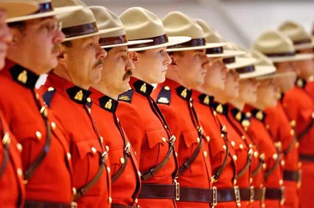加拿大皇家騎警起源于1873年,先屬于聯(lián)邦警察,主要負(fù)責(zé)安保、禮賓的任務(wù)。加拿大皇家騎警的裝備和服裝都非常帥氣,平時執(zhí)勤時都穿有黃道的深灰褲子、灰棕色上衣,頭戴有黃道的大蓋帽,腰部配有灰色武裝。帶以往傳統(tǒng)的紅色警服只在莊嚴(yán)場合下使用。