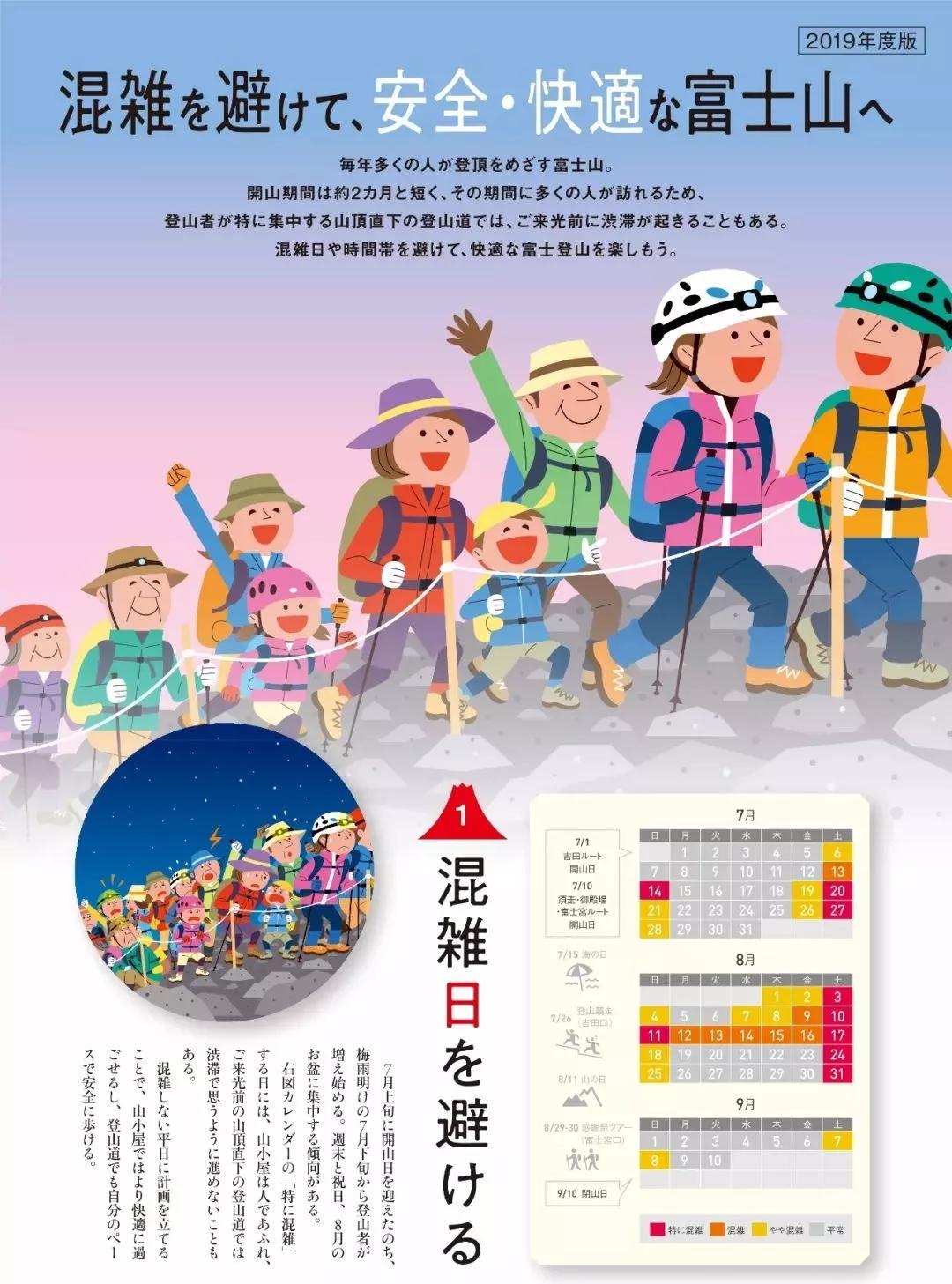 富士山登山高峰的日歷,可以避開人群集中的日期進(jìn)行登山