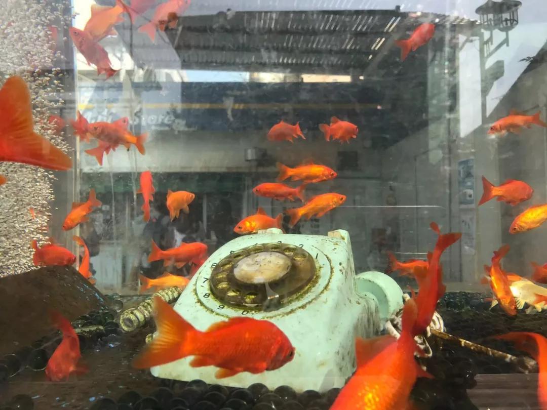 奈良縣的大和郡山市就是日本的三大金魚產(chǎn)地之一。在這里的柳町商店街,到處都能看見紅色的金魚,在電話亭,檢票閘機上,甚至在自動販賣機里都能找到這些小家伙的身影,從加油站改造而來的「K COFFEE」更是必去之處。大家若是有時間的話還是很推薦過來拍照打卡的喲。