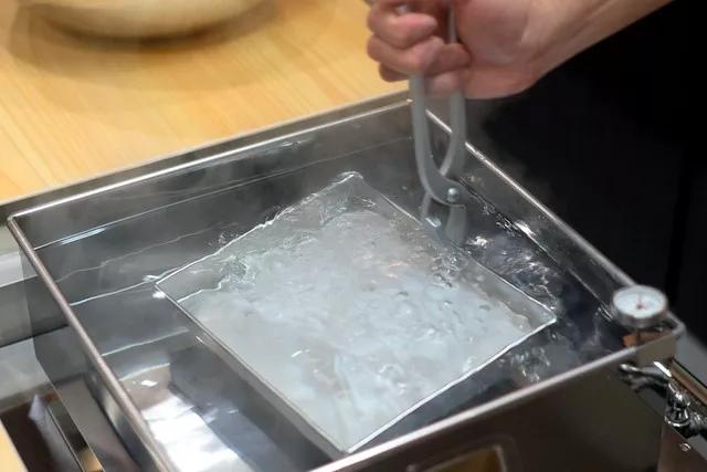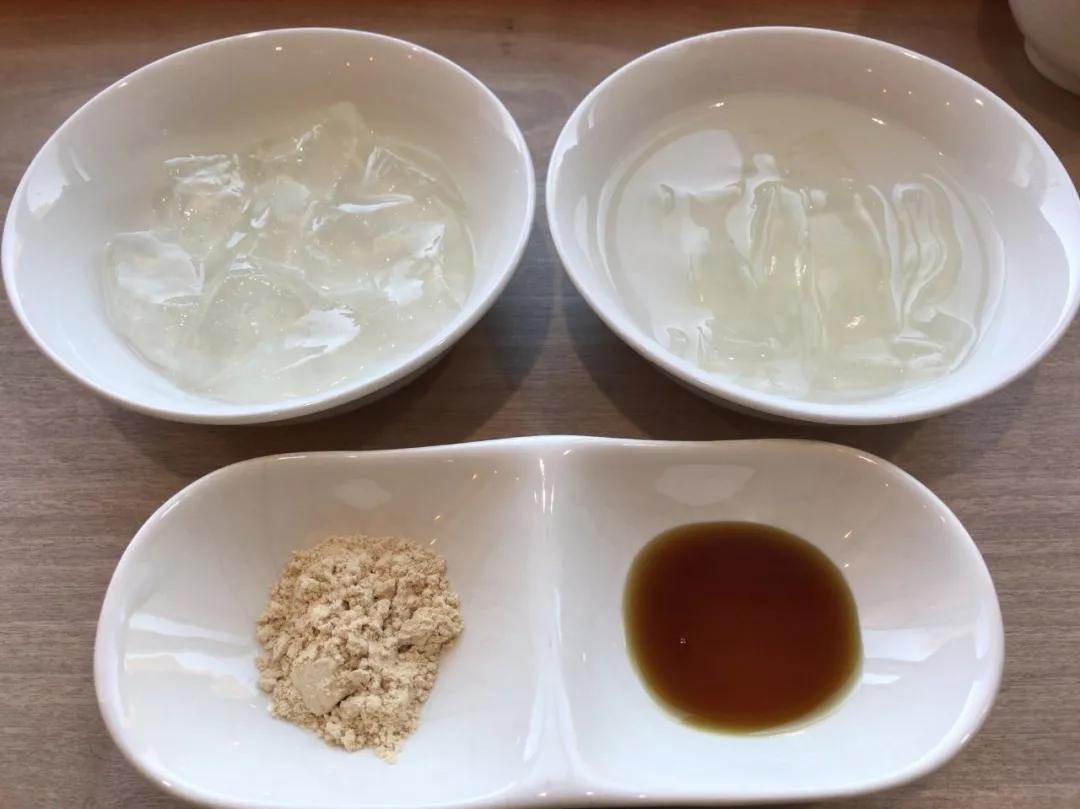 店內(nèi)的葛粉僅使用吉野本葛和水制作,不使用任何添加劑,并堅持使用傳統(tǒng)技法制作。成品外觀晶瑩透亮,吃起來清涼爽滑。做好后的葛粉需要立刻食用,超過10分鐘,透明度就會開始下降,變得黏糊失去口感喲。
