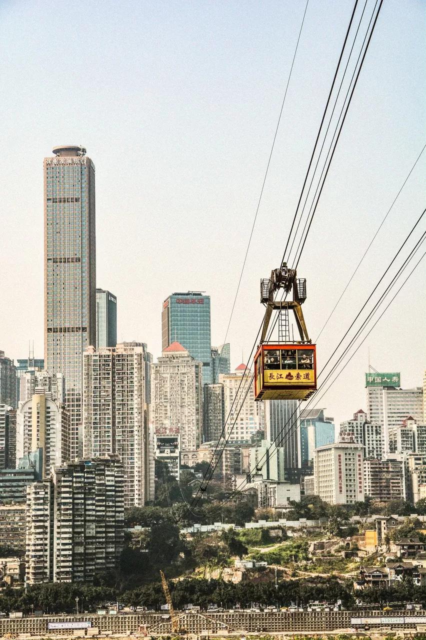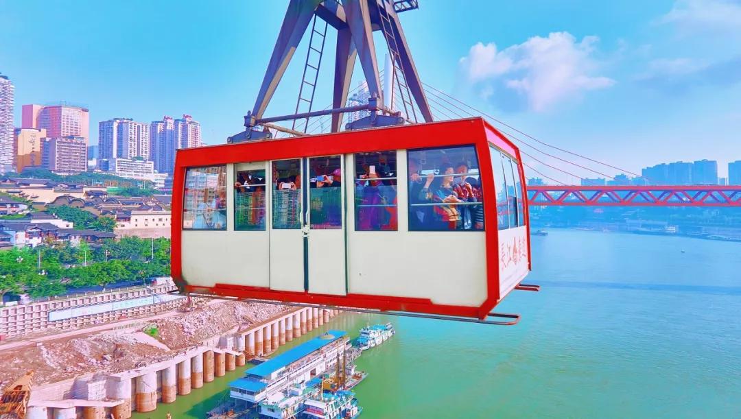 搭乘能容納50人的巨型“箱子”,腳下是濤濤的江水,身側(cè)是氣派的大橋,前方是林立的高樓,千余米的距離、5分鐘的時間,足以一窺山城的無限魅力。