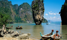 早餐后前往碼頭,搭乘船游覽有小桂林之稱的【攀牙灣】(船程約 30 分鐘)——它是由奇異迷人的石群和矗 立海中的斷崖島嶼所組成的,因而得名——“泰國小桂林”,一路乘游船觀賞由石灰?guī)r所組成的大小島嶼,你 會禁不住感嘆大自然的神奇,登上經典電影 007 取景地之一的著名景點——【占士邦 007 島】(游覽時間不低 于 30 分鐘);