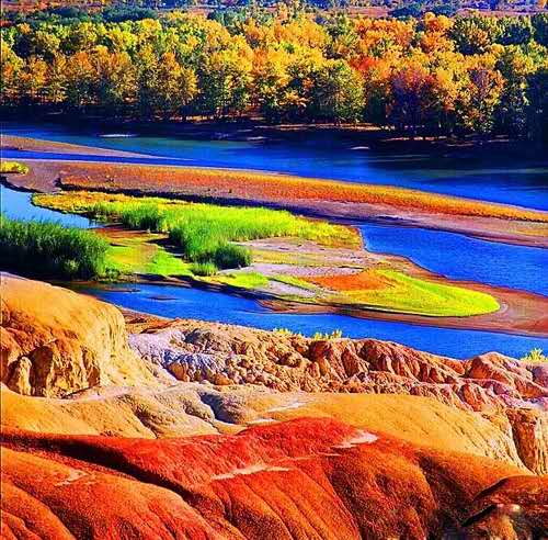 5—10米,土梁高一般為5—15米,最大高度約25米,高低錯(cuò)落,分布面積3平方公里左右。這里地處干旱多風(fēng)地帶,由于河岸巖層間抗風(fēng)化能力的強(qiáng)弱程度不一,形成參差不齊的輪廓,巖層以紅色、土紅色、淺黃和淺綠色砂巖、泥巖及砂礫巖組成,巖石色澤各異,版權(quán)所有山東聊城聊之旅國際旅行社有限公司,轉(zhuǎn)載必究!五彩繽紛,狀如彩色古堡、怪獸、峰叢等奇特造型的地貌,是典型的彩色丘陵。大風(fēng)起時(shí),會(huì)發(fā)出怪異的聲音,更增添了神秘的色彩。它的開發(fā)建設(shè)無疑對(duì)喀納斯景區(qū)是景上添花,客流量及經(jīng)濟(jì)效益可觀。五彩河岸將以其典型和獨(dú)特的地貌形態(tài),吸引著國內(nèi)外游客來此旅游觀光。