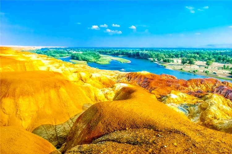 五彩灘一河兩岸,南北各異,是國家4A級(jí)景區(qū)。五彩灘,它位于我國新疆維吾爾自治區(qū)布爾津縣西北約24公里的也格孜托別鄉(xiāng)境內(nèi),注入北冰洋的額爾齊斯河穿其而過。五彩灘地貌特殊,長期干燥地帶,屬于典型的彩色丘陵(或彩丘地貌)。