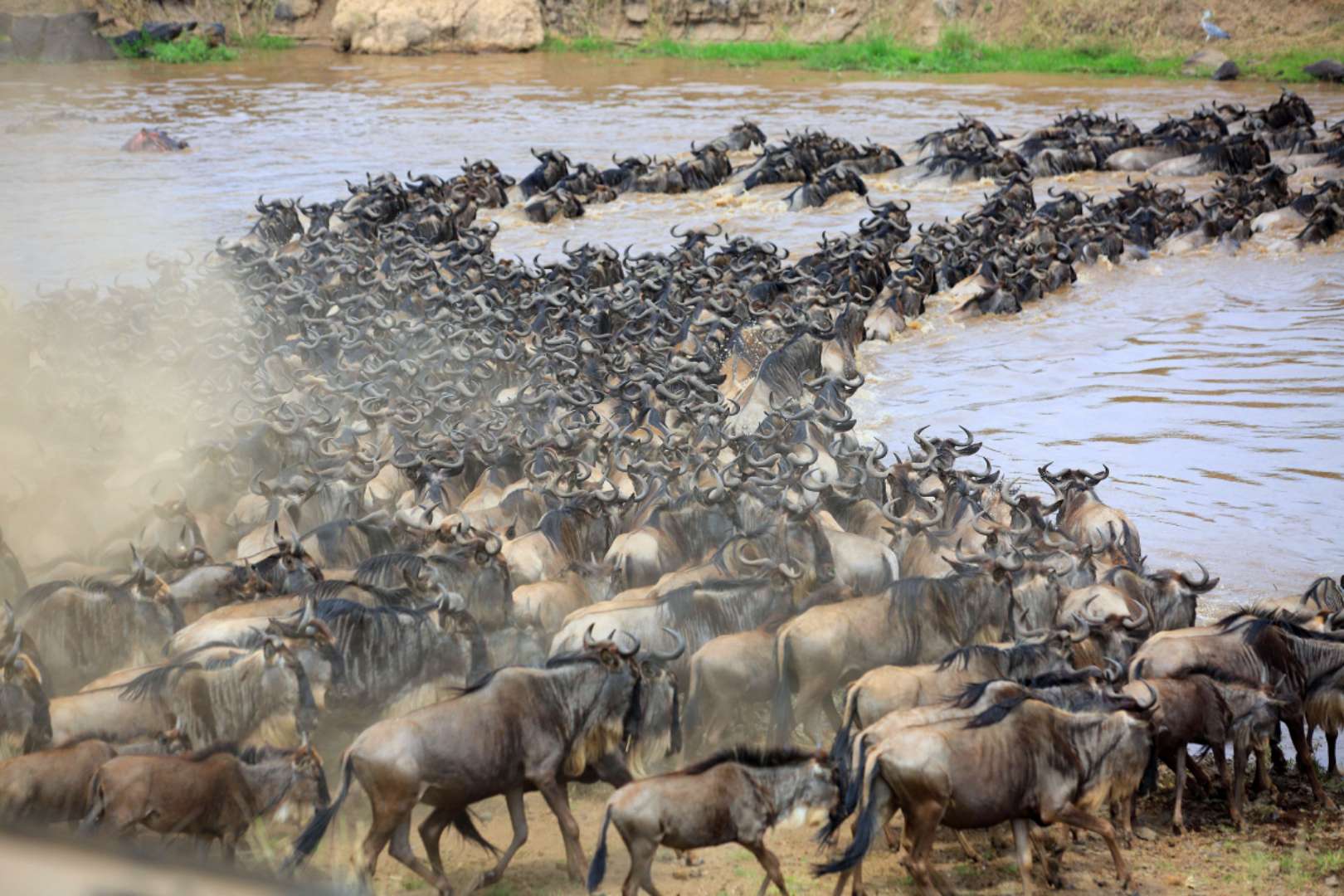 每年,野生動(dòng)物橫渡馬拉河,在肯尼亞的馬賽馬拉國(guó)家公園和坦桑尼亞的塞倫蓋蒂國(guó)家公園之間來(lái)回遷徙,版權(quán)所有山東聊城聊之旅國(guó)際旅行社有限公司,轉(zhuǎn)載必究!在世界壯觀野生動(dòng)物大遷徙中占有重要地位。暴漲的激流和鱷魚的狙擊是最艱難而壯觀的一幕,這被稱為馬拉河之渡或天國(guó)之渡。