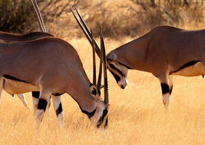 從肯尼亞雪山上流經(jīng)到地勢低的桑布魯?shù)囊镣咚髂崃_河(EwasoNyiro)是桑布魯?shù)纳?,當?shù)厝朔Q之為桑布魯之水(WaterSamburu),因為水的顏色呈棕色,又稱之為棕色的水(Brown;Water),也正是因為這條寶貴的支流,給干旱的桑布魯增色不少,在這里,隨處可見成群的大象在河邊嬉戲,鱷魚在泥水里懶洋洋的沐浴日光浴,成群的河馬匍匐在河中,當然這些動物在肯尼亞其他地區(qū)也可以看到,但是桑布魯所特有的五大動物(BIGFIVE)是極其罕見的,葛式細紋斑馬(Brevyzebra),東非劍羚(Beisaoryx),藍腿索馬里鴕鳥(Somaliostrich),網(wǎng)狀長頸鹿(Reticulatedgiraffe),長頸羚(Gerenuk)。這里多達380余種的鳥類同樣吸引著鳥類學家的眼球,象犀鳥,非洲食魚鷹等。