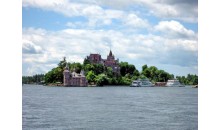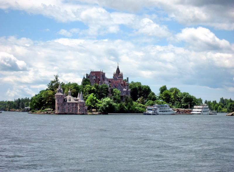 遠(yuǎn)處有一個心島,1900年喬治•博爾特投資2500萬美元,興建羅賓蘭德古堡獻(xiàn)給他的妻子露易斯,不幸的是1904年他的妻子逝世了。此建筑物又叫博爾特古堡。他傷心欲絕,再也沒有踏上島上一步,而將它捐給了美國政府。
