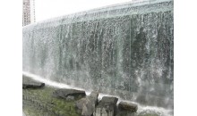 廣州火車(chē)東站及其廣場(chǎng)位于新城市中軸線的北段,東站綠化廣場(chǎng)以大面積的綠地營(yíng)造了一個(gè)大尺度的環(huán)境空間效果,配以精致的花壇、雕塑、水景,體現(xiàn)了廣州現(xiàn)代化國(guó)際城市的都市風(fēng)采。長(zhǎng)89米、高8米的玻璃墻構(gòu)成了水景瀑布的依托,流水從高平臺(tái)溢出,順玻璃墻瀉入水池,各色燈光不斷變幻將瀑布映得五顏六色。