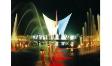 位于煙臺(tái)經(jīng)濟(jì)技術(shù)開發(fā)區(qū)金沙灘海濱公園正門處,為一圓形階梯狀構(gòu)筑,整個(gè)廣場(chǎng)噴泉灑珠,青草滴翠,花紅樹綠,烏囀鶯啼,使人仿佛置身天上的街市,神奇無比。北部最高點(diǎn)矗立著一組風(fēng)帆群雕,在碧海藍(lán)天間顯現(xiàn)出勃勃生機(jī),象征著開發(fā)區(qū)在改革開放的大潮中乘風(fēng)破浪,一帆風(fēng)順;入夜,這里華燈齊放,燦爛輝煌,風(fēng)帆通體發(fā)光,昂揚(yáng)向上,寓意著光輝的前景和時(shí)代的精神。