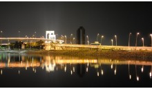 澳門“友誼大橋”,工程原稱新澳氹大橋,1994年初建成通車。位于舊大橋(嘉樂庇總督大橋)以東,連接澳門半島新口岸水塘北角(外港碼頭處)與氹仔北安碼頭。橋?qū)?5米,設(shè)兩條雙線車道,中設(shè)分隔線,車道兩旁設(shè)1.5米寬的行人道。