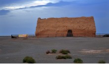 晉(317-420年)壁畫墓位于墓群南端的陶家莊。由于是70年代才開始發(fā)掘,所以并不被外界所熟悉。壁畫墓距地表12米,封土殘高2米,前有長33米,寬1.42米的斜坡墓道直通墓室,墓室全用平磚疊砌,分前后兩室,前室四壁和頂部布滿彩色畫面,后室只在后壁施畫。由于這里氣候干燥,壁畫保存基本完好,此墓的發(fā)現(xiàn),是河西走廊第一次發(fā)現(xiàn)東晉壁畫墓。