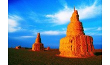 海森楚魯怪石城位于阿拉善右旗努日蓋蘇木境內,距旗府所在地220公里。“海森楚魯”為蒙語音譯,意為象鍋一樣的石頭。在方圓二十余公里的地方,大到幾十立方,小到拳頭大小的風蝕原石隨處可見, 怪石林立,形態(tài)各異,有象臨空欲飛的碩大雄鷹,有象“蘑菇云”……各式各樣,栩栩如生,與云南石林,黃山怪石相比也并不遜色,使人感到大自然神賜般的無窮魅力。