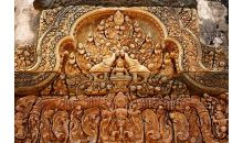 斗象臺(tái)為十二世紀(jì)晚期闍耶跋摩七世(Jayavarman VII)的巴揚(yáng)寺式(Bayon)建筑,臺(tái)的長(zhǎng)度超過(guò)三百米,共有三個(gè)平臺(tái)。
