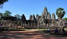 巴戎廟 位于柬埔寨暹粒,吳哥城內(nèi)最為出名的要數(shù)巴戎廟中的佛塔了,巴戎廟位于吳哥城的中心位置,巴戎廟是由一組共49座小寶塔圍繞中央尖塔構(gòu)成的建筑群,這些塔在佛語(yǔ)里又被稱(chēng)做浮屠,每一座塔的四面都雕刻著巨大的佛面,也正因?yàn)槿绱?,這些塔又被稱(chēng)作佛面塔,上面的佛被稱(chēng)為四面佛。