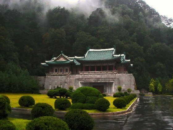 妙香山麓的國際友誼館,由金日成國際友誼館(本館)和金正日國際友誼館(別館)組成,前者比后者大,均為多層大型朝式建筑(與中國的樓閣相似),遠(yuǎn)看似木結(jié)構(gòu),其實為混凝土建筑。金日成國際友誼館,始建于1974年,1978年8月28日開館,展覽館為6層樓房,建筑高43.3米,總建筑面積為5萬多平方米,190個房間。它的主要部分不是下圖中那外表的建筑物,而是開鑿在其后的大山中的山洞部分。展覽館按大洲和國家陳列著世界一百七十多個國家的政黨、國家元首、社會界和政界人士向金日成贈送的禮品,禮品達(dá)22萬多件。