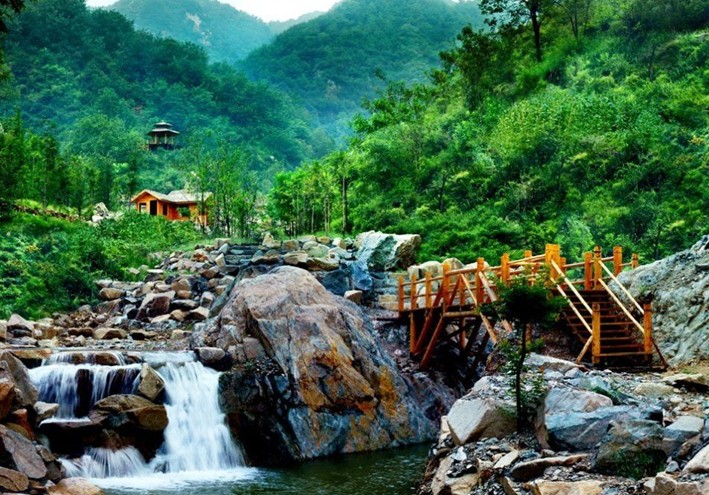 九如山瀑布群風(fēng)景區(qū)以自然山水景觀為特色,集生態(tài)觀光、休閑娛樂(lè)、養(yǎng)生度假為一體,是人與大自然和諧相處的典范之作。景區(qū)距濟(jì)南市區(qū)約48公里,東臨章丘市,南接萊蕪市和泰安市,植被覆蓋率97%以上,負(fù)氧離子含量每立方厘米達(dá)7萬(wàn)個(gè)以上,居濟(jì)南之首。景區(qū)面積三十六平方公里,可分為“深譚飛瀑景觀區(qū)”、“九如峽谷景觀區(qū)”、“天蓬瀑布景觀區(qū)”、“長(zhǎng)城古道景觀區(qū)”四大旅游區(qū)。群山連綿,峰巒疊嶂,峽谷縱橫,森林茂密,山泉遍布,溪流交錯(cuò),瀑布成群,這些令人震撼的景觀由長(zhǎng)度堪稱世界第一的實(shí)木棧道巧妙連綴在一起,形成了以八潭、九瀑、二十四泉、三十六峰為核心景觀,以山峰、棧道、山泉、溪流、瀑布、深潭為特色的中國(guó)北方罕見(jiàn)的大型生態(tài)自然景區(qū),同時(shí)它又是泉城七十二名泉的發(fā)源地,濟(jì)南南部山區(qū)三川之一——錦繡川的源頭.