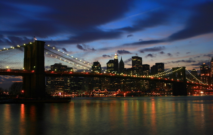 布魯克林大橋是1883年5月24日下午二時啟用通行的(維多利亞女皇誕辰日),開幕時,每輛汽車收費(fèi)美金五元。如今,每天從橋上經(jīng)過的車輛約十四萬輛,單車千多架,行人兩千名。日落的時候,從布魯克林沿著木道步行,可以觀賞曼哈頓的高層建筑及美麗的街景,可說是紐約旅游的最亮點(diǎn)。每年7月4號美國獨(dú)立紀(jì)念日在此放煙火。