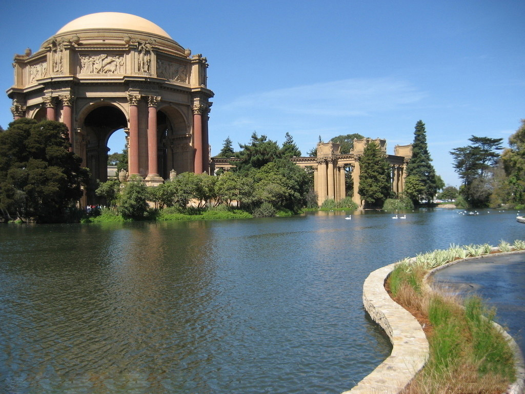 舊金山為了慶祝連接大西洋和太平洋的巴拿馬運(yùn)河竣工,另一方面顯示在1906年大地震后重建的新市貌,而于1915年在現(xiàn)今的濱港區(qū)舉行了巴拿馬-太平洋世界博覽會(huì)。地震后的舊金山重建非常迅速,地震時(shí)被震毀市政廳,也趕在1915年于原地重建完畢,在世界博覽會(huì)舉行時(shí)已經(jīng)完全看不到地震災(zāi)后的影響。舊金山當(dāng)時(shí)為了加速重建工程,許多建筑物省略了防震設(shè)計(jì),忽略了當(dāng)初地震所帶來(lái)的警惕,這也導(dǎo)致后來(lái)1989年大地震造成許多建筑物損毀。世界博覽會(huì)從1915年二月二十日到十二月四日,展地范圍從東邊現(xiàn)在梅森碉堡往西延伸到藝術(shù)宮。當(dāng)時(shí)博覽會(huì)金碧輝煌的建筑物在展后幾乎全部拆除,目前只剩下藝術(shù)宮和其后面科博館的建筑物,日本茶園(已移至 Belmot 市),還有市政廳旁的比爾•格雷厄姆市政禮堂。