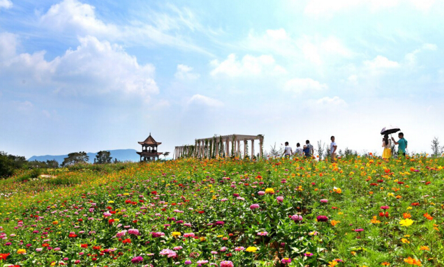 可觀(guān)賞波斯菊,百日草,醉碟,鳶尾花、海棠、枇杷、巨紫荊、牡丹、月季、楸樹(shù)、波斯菊、百日草,醉碟、二月蘭、鳶尾花、虞美人、鳳仙花,櫟樹(shù)、木槿樹(shù)、櫻花、美人蕉、紅瑞木等百余種花木。