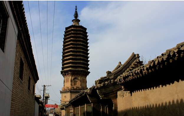 華嚴寺,全國重點文物保護單位,建于明洪武三十二年(1399年),清初順治年間改稱崇教寺,俗稱下華嚴?,F(xiàn)占地3400平方米,自南向北有前、后殿,兩側有東、西配殿。前殿面闊進深各三間,單檐歇山布瓦頂,檐下施五踩斗拱,梁架為五架梁,前、后各出單步梁,內(nèi)施天花,繪有精美的龍鳳圖案。