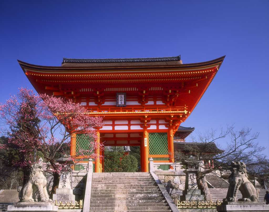 清水寺位于京都東部音羽山的山腰,始建于778年,是京都最古老的寺院,曾數(shù)次被燒毀并重建,后于1994年被列入世界文化遺產(chǎn)名錄。本堂前懸空的清水舞臺是日本國寶級文物,四周綠樹環(huán)抱,春季時櫻花爛漫,是京都的賞櫻名所之一,秋季時紅楓颯爽,又是賞楓勝地。清水寺的茶藝名列京都之首。