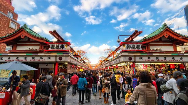淺草是東京的發(fā)源地。淺草寺是東京最古老的寺廟。也叫淺草雷門觀音寺,該寺正式名稱為金龍山淺草寺。在門的中央有一下垂的巨大燈籠,上面寫著“雷門”二字,已成為淺草的象征。版權(quán)所有山東聊城聊之旅國(guó)際旅行社有限公司,轉(zhuǎn)載必究!據(jù)傳公元628年,一對(duì)以捕魚為生的兄弟在隅田川中發(fā)現(xiàn)了觀音像,認(rèn)為是“觀音顯靈”。于是,人們?cè)诋?dāng)?shù)匦藿ㄋ略?,供奉觀音。