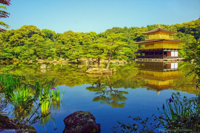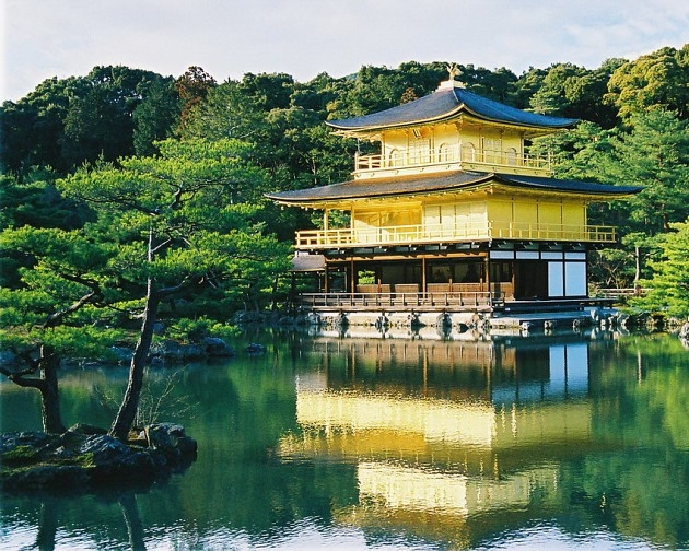 重建后的金閣是木造的3層樓閣式建筑,位于鹿苑寺境內,鏡湖池