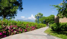 密浦景區(qū)由中山村后的密浦山峽谷而上,谷口有玲瓏精巧的風和亭,猶如婷婷少女在歡迎游客的到來。密浦景區(qū)包括峽谷中的香樟塢、經堂、七疊飛泉、玉雪亭、清風亭、木荷弄、九龍宮、老鼠梯、百步峻、登天門頭以及巖頂坪頭的觀攬亭、密浦寺、九龍井、九龍?zhí)?、古茶園、鴛鴦亭、鳥盤峰等景觀。版權所有山東聊城聊之旅國際旅行社有限公司,轉載必究!峽谷中林木森森,瀑泉淙淙,危巖屹立,怪石嶙峋,景色秀麗。巖頂風光即是高瞻遠矚,雄偉壯觀。站在五指巖的最高峰--鳥盤嶺尖俯瞰麗州大地,山峰連綿起舞,層層峰巒似碧海中浮動的小島,平疇沃野,象一塊塊翠綠的地毯,鋪設于青山綠水之間,紅磚黑瓦相間的村落和銀光閃爍的山塘水庫猶如鑲嵌在麗州大地上的明珠,熠熠發(fā)光。蜿蜒伸展的公路,如一條條飄舞的綢帶。“會當凌絕頂,一覽眾山小”,令人心曠神怡,賞心悅目。