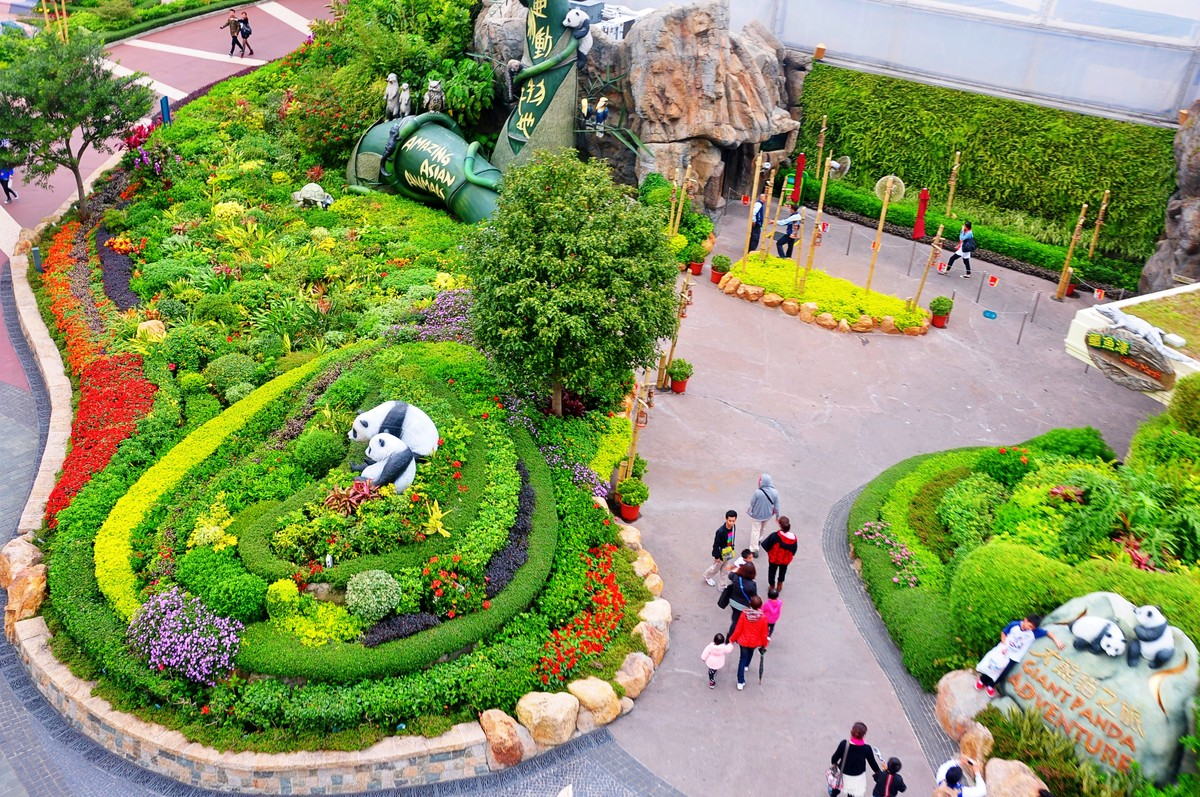 公園有前后兩個(gè)入口,從公園的正門進(jìn)入會(huì)首先經(jīng)過(guò)鯨豚保護(hù)廣場(chǎng),繼而到達(dá)綠野花園及兒童王國(guó),再乘坐纜車就可以到達(dá)山上的機(jī)動(dòng)游戲區(qū);如果從后門口大樹灣的入口進(jìn)去,則會(huì)通往集古村,乘登山電梯再經(jīng)過(guò)急流天地,便可達(dá)到山上的機(jī)動(dòng)游戲區(qū)。從后門入園(大樹灣的入口)進(jìn)去可以避開人群,逆向而行。