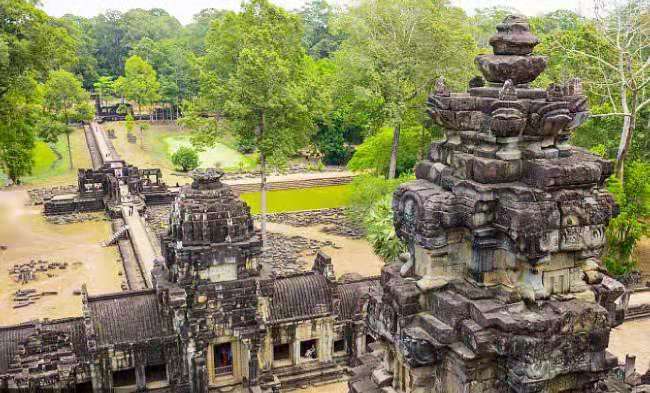 13世紀(jì)中開始,吳哥王朝國(guó)力漸漸衰退,1431年暹羅占領(lǐng)吳哥地區(qū),更摧毀許多建筑和灌溉設(shè)施。王室被迫搬離吳哥,整個(gè)地區(qū)除了做為佛教圣地之用的吳哥窟外,幾乎完全荒廢??脊艑W(xué)者對(duì)于吳哥地區(qū)的荒廢提出幾個(gè)理由: