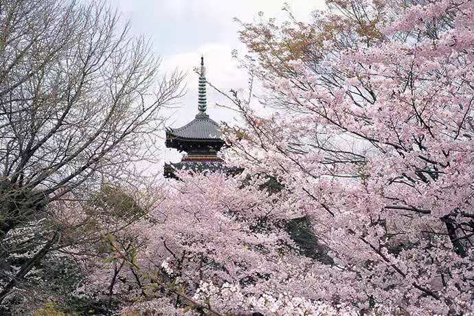 早在1624年便修建完備的寬永寺,至今仍立于不忍池畔。正是寬永寺建立之時(shí)移種的櫻花,開啟了上野公園賞櫻名園的歷史。如今上野公園已有1300多株櫻花,其中櫻花名品“染井吉野”,就是由上野公園開始而為世人廣知的。每年櫻花花季時(shí),上野公園櫻花大道的緋紅云朵,早已在魯迅筆下化為國人對日本櫻花的第一印象。而花開時(shí)節(jié)在夜間燈光下觀賞“夜櫻”,是日本人賞櫻的獨(dú)特方式。