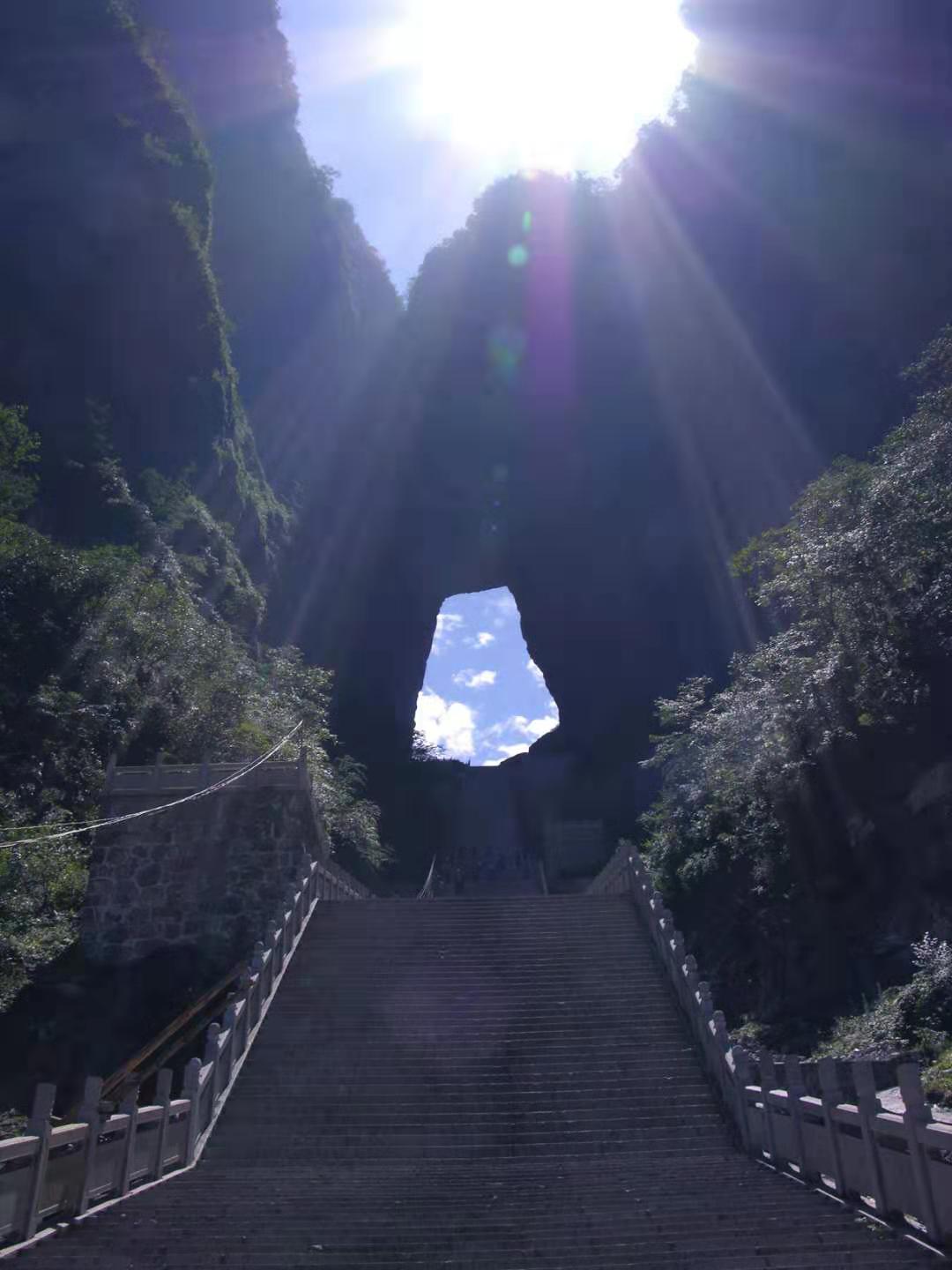 據(jù)說(shuō),天門(mén)洞開(kāi)景區(qū)的有上天梯。有著九百九十九級(jí)臺(tái)階的上天梯!