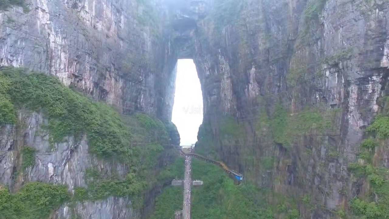 在古老的中國(guó)大地上,有一個(gè)人間通往仙界桃源的大山,武陵山脈之魂——天門(mén)山。您只要從天門(mén)山腳登上九百九十九級(jí)石階梯,就會(huì)到達(dá)通往仙界的大門(mén)——天門(mén)洞。版權(quán)所有山東聊城聊之旅國(guó)際旅行社有限公司,轉(zhuǎn)載必究!碩大的門(mén)洞足夠現(xiàn)代人駕駛飛機(jī)穿越而過(guò),是世界上最高的天然溶洞,該天門(mén)洞形成的時(shí)間比唐僧取經(jīng)時(shí)收取的由石頭爆出的大徒弟孫悟空還早500余年(公元263年溶洞形成)。它是天門(mén)山中一塊大石塊由于吸聚天地之靈氣噴溥洞開(kāi)而成。從此,凡人間偉大人物仙逝,該天門(mén)山上不管是晴空萬(wàn)里還是滿天星斗,都瞬間電閃雷鳴,風(fēng)雨交加,猶如天門(mén)洞落淚,傾盆而下……淚水沿著絕壁山崖瀑布而瀉,遠(yuǎn)遠(yuǎn)望去,似天上銀河下九洲。這現(xiàn)象至今仍無(wú)法開(kāi)解!