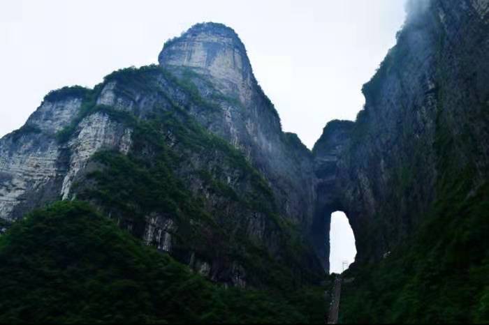 界天門(mén)山國(guó)家森林公園的天門(mén)山主峰,有一個(gè)巨大的山洞,這就是舉世聞名的天門(mén)洞。