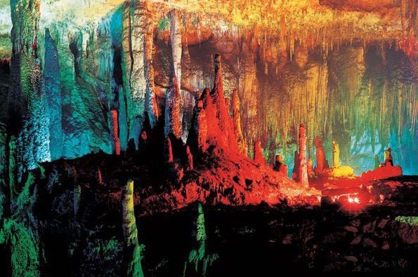 九天洞距市區(qū)70公里。九天洞百余處景點(diǎn)、景觀堆珍疊玉,藏奇納秀,神秘莫測(cè),幽深無(wú)堰,享有“世界奇穴之冠”、“亞洲第一大洞”諸桂冠。洞分上、中、下三層,最下層低于地表面400多米。洞內(nèi)36支洞交錯(cuò)相連,內(nèi)有30余座大廳、10余座洞中山、6方千丘田、5座自生橋、3段陰河、3個(gè)天然湖、12瀑、3井等景。洞中石林密布,鐘乳懸浮,巖漿鑄成的各種精致景物婀娜多姿。洞中的石筍、石柱、石幔、石花、石人、石獸等千姿百態(tài),不可名狀,紛呈紅黃綠白黑灰諸色,可謂五彩繽紛,琳瑯滿目。其中九星山玉柱、九天玄女宮和壽星宮三大奇觀堪稱景絕蓋世。