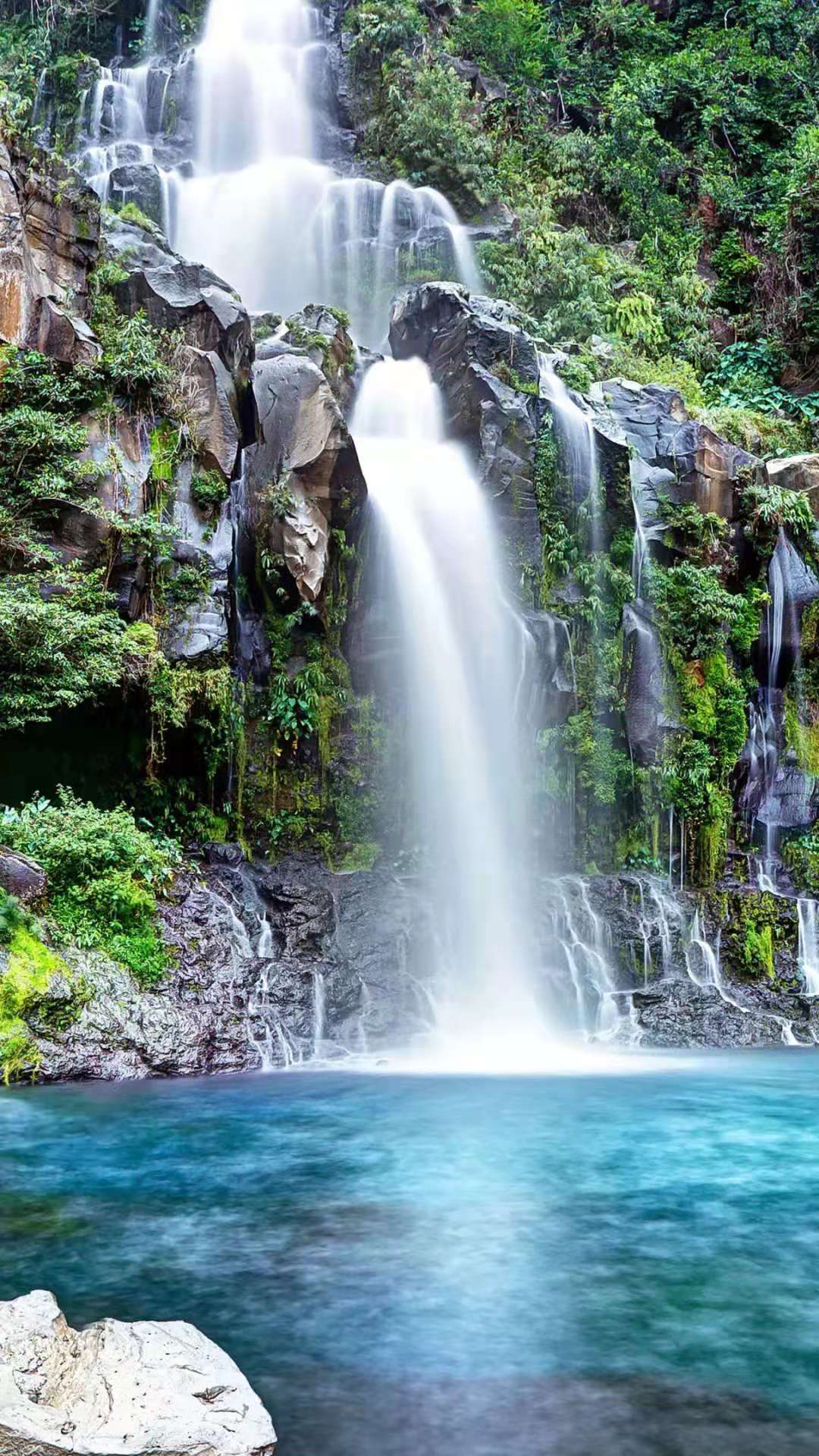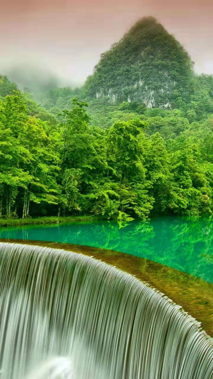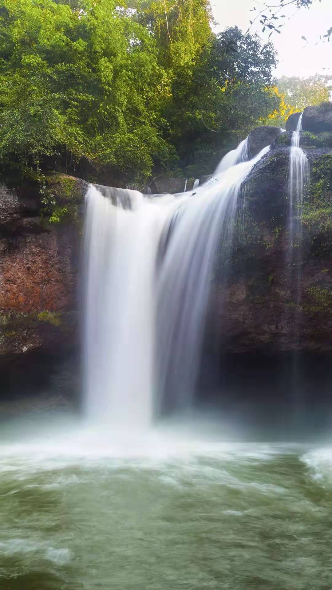瀑布下方水潭極深,水汽長(zhǎng)年彌漫不散,一經(jīng)陽(yáng)光折射,一道清麗的彩虹跨其上,故又有“彩虹淵”的美名。下游巨石紛立,是崖