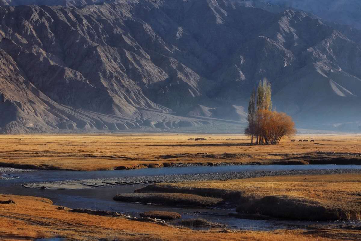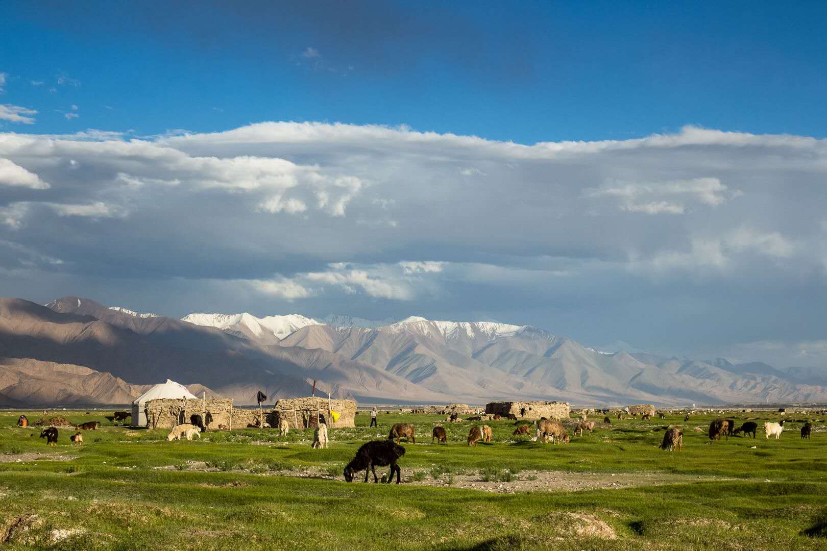 阿拉爾金草灘就在塔什庫爾干縣城邊上,在石頭城下,因那里有一個叫阿拉爾的鄉(xiāng)村,故得名阿拉爾金草灘,因有塔什庫爾干河流經(jīng)此處,這里水草豐美,牛羊遍地,和遠(yuǎn)處的雪山白云藍(lán)天交融在一起十分漂亮。我們?nèi)サ臅r候夕陽夕照,碧綠的草灘一片金色,遠(yuǎn)處牧人白色的氈房,羊群都沐浴在夕陽下,阿拉爾金草灘由此得名。