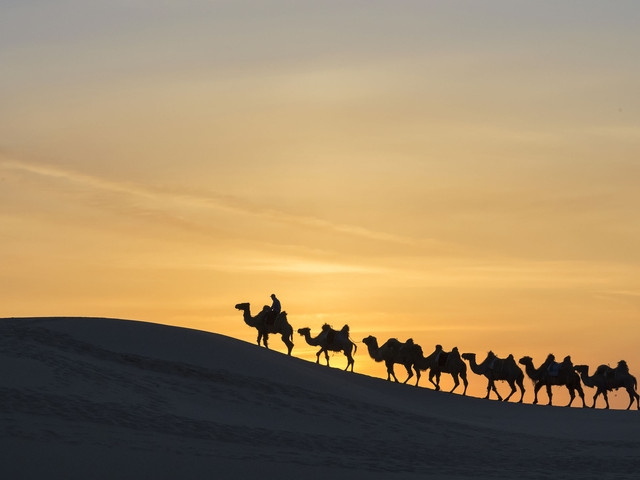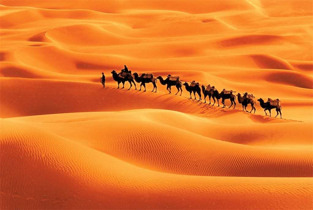 在這坦蕩的大漠中,乘一峰駱駝觀日出日落胸中自有一番豪邁。而佇足大漠邊、面積達(dá)1000平方米的達(dá)斯坦古城宮殿遺址,每當(dāng)大風(fēng)過后,從流沙中露出的紅、黃、藍(lán)色的陶片和年代久遠(yuǎn)的古幣,讓人在懷古幽靜中又有幾分尋寶的驚喜。