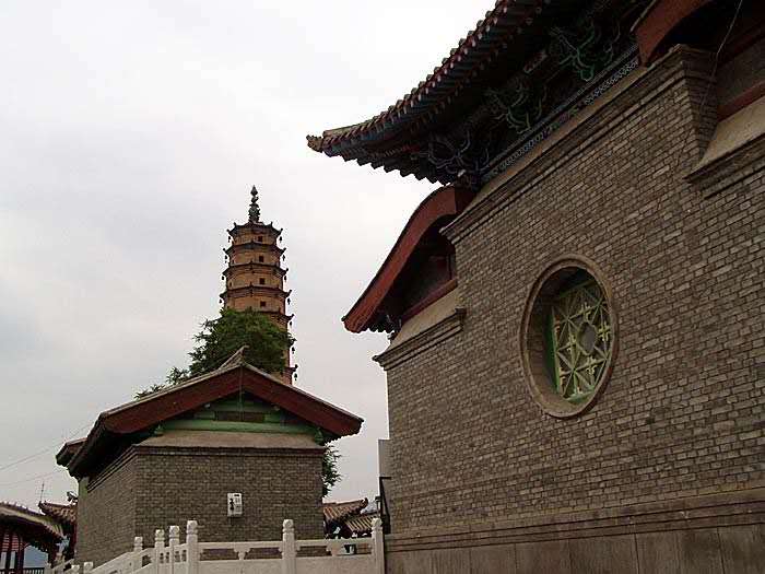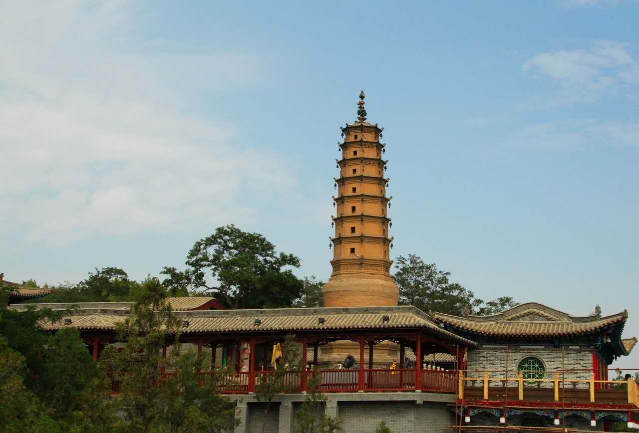 清康熙五十四年(1715年),巡撫綽奇補(bǔ)舊增新,擴(kuò)建寺址,改名慈恩寺,但百姓仍呼之為白塔寺。白塔八面七級,高17米,各級每面都有佛像。角檐有銅馬,微風(fēng)吹過,清脆動聽,上冠綠頂,下筑圓基。清人秦維岳有詩云:“北上環(huán)擁勢嵯峨,塔影巍然最上坡。布地散金名寶剎,擎天一柱俯黃河?!泵枥L出白塔雄姿。